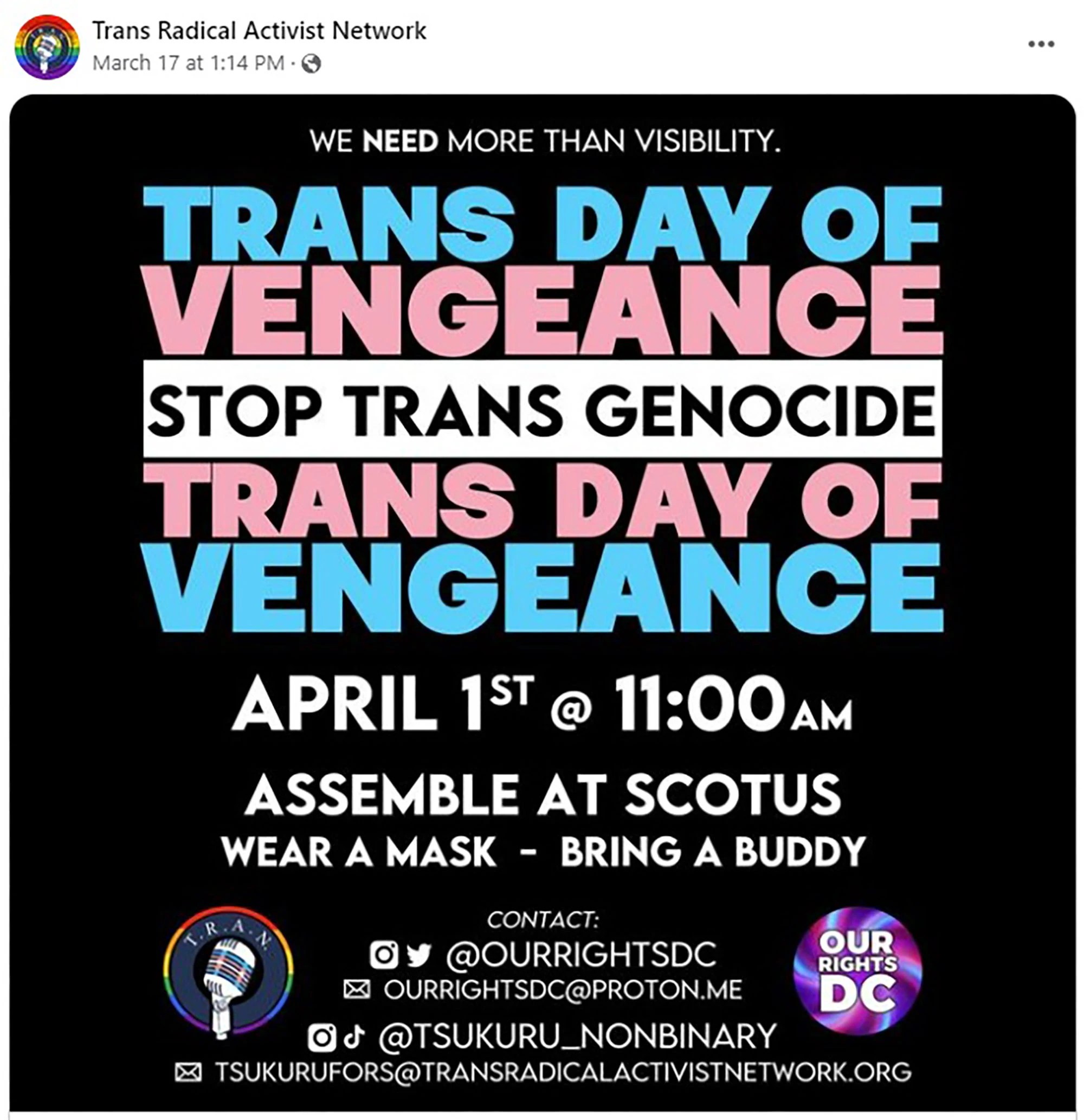 Adding to all of this was what I saw originally referred to as Trans Day of Vengeance which certainly has ominous overtones.