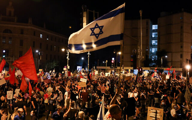 Israelis protest against Israeli prime minister Benjamin Netanyahu outside Prime Minister official residence in Jerusalem on July 25, 2020. Photo by Olivier Fitoussi /Flash90 *** Local Caption *** שמאל משטרה ירושלים הפגנה בלפור