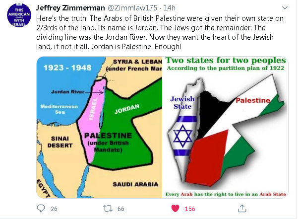 “Progressive” Europeans, Canadians, and United States citizens, among others, are such a gullible breed. Historically, the world has used the Jewish people as the cause of pretty much everything bad and they are still at it. I guess that’s why it’s so easy for them to believe that Israel is an “apartheid state” and “occupiers” when the evidence is plain that they’re not. Also, according to an image I posted this morning, the British really did establish a Palestinian state. It’s called “Jordan.”